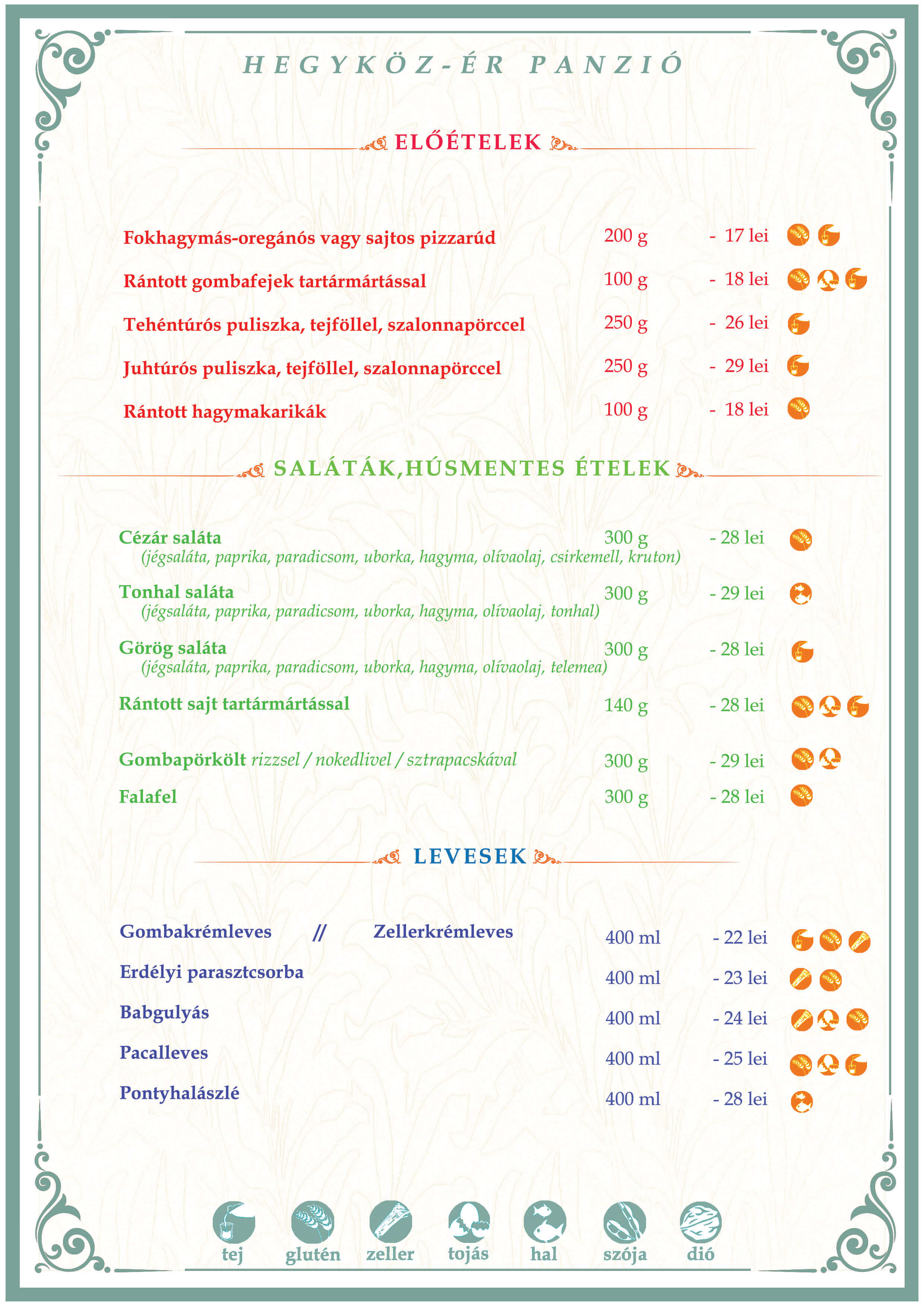 Előételek, saláták, húsmentes ételek, levesek