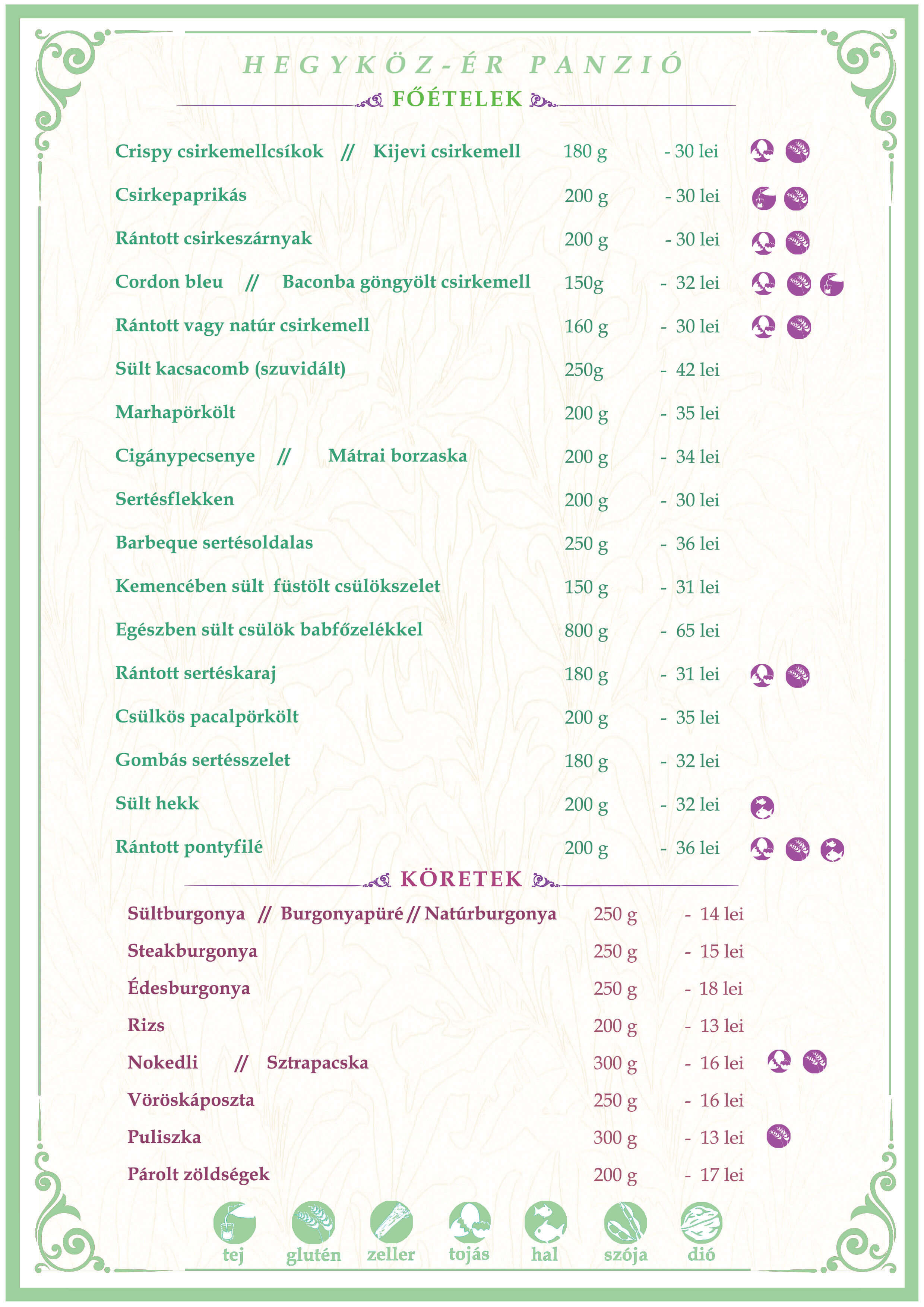 Főételek, köretek